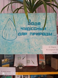 Ежегодно 22 марта в мире отмечается Всемирный день воды. Этот день является уникальной возможностью напомнить человечеству о чрезвычайной важности водных ресурсов для окружающей среды и развития общества. Ведь Землю называют «Голубой планетой» потому что она 3\4 состоит из воды. 22 марта В Усовской сельской библиотеке оформлена книжная выставка «Вода чудесный дар природы» посвящённая данному событию. На выставке представлены книги, посвящённые состоянию водных ресурсов России, а также Саратовской области.
