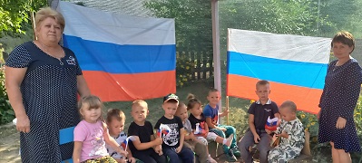 Ново - Алексеевская сельская библиотека совместно с читателями и воспитанниками детского сада "Солнышко" приняли участие в патриотической акции "Наш родной ТРИКОЛОР!", посвященной Дню Государственного флага