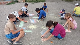 В преддверии Дня Российского флага Афанасьевская сельская библиотека для участников детской группы " Весточка" организовала конкурс рисунков на асфальте. Библиотекарь ознакомила всех присутствующих с историей возникновения праздника, какого цвета триколор и что означает каждый цвет. Затем все дружно взяли разноцветные мелки и стали рисовать