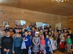 Рождественская Ёлка в Синодском храме "Сошествие Святого Духа на апостолов". В самом начале праздника настоятель Храма отец Олег встретил всех праздничным перезвоном колоколов, после чего поздравил всех присутствующих с Рождеством Христовым, в ответ члены клуба "Дюймовочка" подарили ангелов сделанных своими руками. В ходе развлекательной программы ведущие, члены юношеского клуба "Алые паруса", рассказали детям о