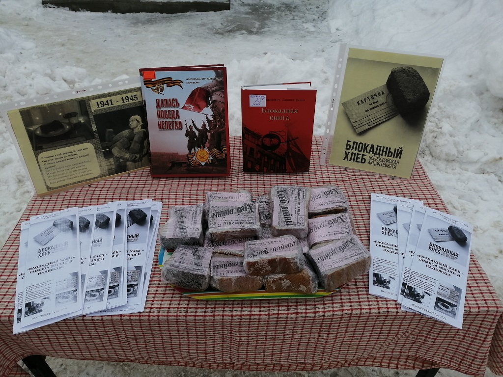 27 января Центральная районная библиотека провела Акцию памяти «Блокадный хлеб», которая призвана напомнить о мужестве жителей Ленинграда, переживших беспрецедентную блокаду миллионного города вражескими захватчиками. Блокада Ленинграда длилась 872 дня. И это не просто цифра - каждый день стал тяжелым испытанием в жизни блокадников. По разным подсчетам, в городе погибло от 692 тысяч до 1,5 миллионов человек – и 97% из них умерли от голода. Единственной надеждой на завтрашний день был паек. Буханка хлеба постепенно превратилась в 125-ти граммовый кусочек – именно такой была минимальная суточная норма выдачи хлеба для жителей блокадного Ленинграда. Блокада Ленинграда осталась не только на фотографиях, в книгах по истории войны и школьных учебниках, она сохранилась в памяти ленинградцев: многие из них сохранили кусочек блокадного хлеба как напоминание о тех страшных днях. Работники библиотеки рассказали жителям района о подвиге людей, раздали информационные буклеты о прорыве блокады, а также передали как символ памяти 125 граммов черного хлеба.