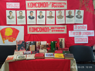 В преддверии праздника в Усовской сельской библиотеке оформлен информационный стенд Комсомол - гордость России" и книжная выставка художественной литературы о комсомольцах "Комсомол - история страны". Основу представленных на выставке книг составили известные романы, повести, рассказывающие о жизни молодёжи страны советов в годы становления советской власти, в годы Великой Отечественной войны, а также послевоенного восстановления народного хозяйства. 29 октября 2023 года в России и бывших республиках Советского Союза исполнятся 105 годовщина самой массовой общественно-политической организации советской молодёжи - комсомола. Более 200 миллионов юношей и девушек в возрасте от 14 до 28 лет прошли в его рядах школу гражданского становления, мужества и героизма, школу жизни. Комсомол ушёл в историю, но память о нём, как свет далёкой и яркой звезды, ещё долго будет согревать душу тем, кто всегда жил по принципу - раньше думай о Родине, а потом о себе. Комсомол был надеждой и гордостью Советского народа. В его рядах выросли миллионы молодых патриотов, активных строителей общества. В трудную минуту комсомол доказывай свою любовь к народу, своей Родине. От одного поколения к другому передавались его славные традиции - горячо откликаться на зов Родины, быть там, где трудно. В любом деле проявлять свою инициативу и почин, во всем быть верным, надежным помощником.
