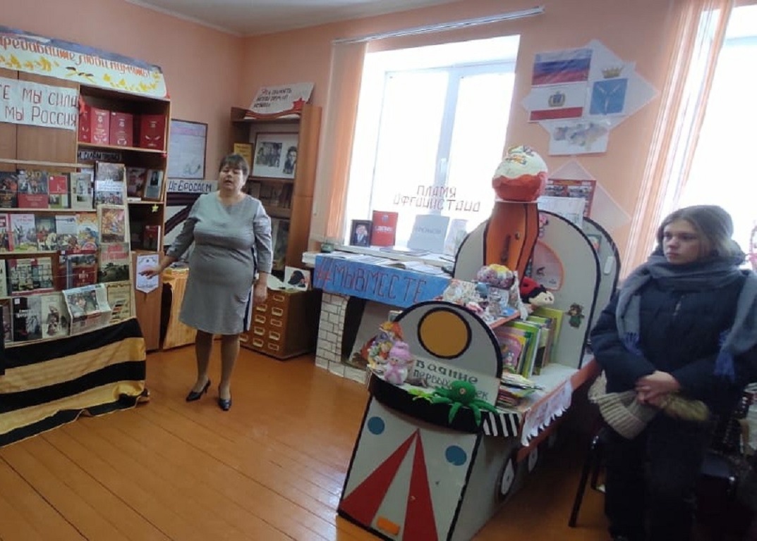 Февраль месяц богат на даты Воинской Славы . Со 2 февраля в Синодской сельской библиотеке проходят книжные выставки: "Сталинградская битва ", "Пламя Афганистана ", "Вместе мы сила, вместе мы Россия" , "Есть такая профессия - Родину защищать". Заведующая организовала и провела обзор книжной выставки "Вместе мы сила, вместе мы Россия". Вместе с детьми совершили небольшой экскурс в историю праздника, вспомнили героев нашей отчизны, начиная с Древней Руси, заканчивая нашим временем.На выставке представлена литература о героическом прошлом, а также настоящем нашей страны.Она рассказала ребятам, какие мероприятия сейчас проходят в нашем районе . Чувство патриотизма, желание поддержать тех, кто выполняет воинский долг по защите мирного населения в ЛДНР и на территории Украины, объединило многих людей. Ребята ещё раз вспомнили, наших солдат, бывших учеников школы, которые сейчас участвуют в спецоперации. По окончании мероприятия заведующая библиотекой и учащиеся приняли участие в акции.
