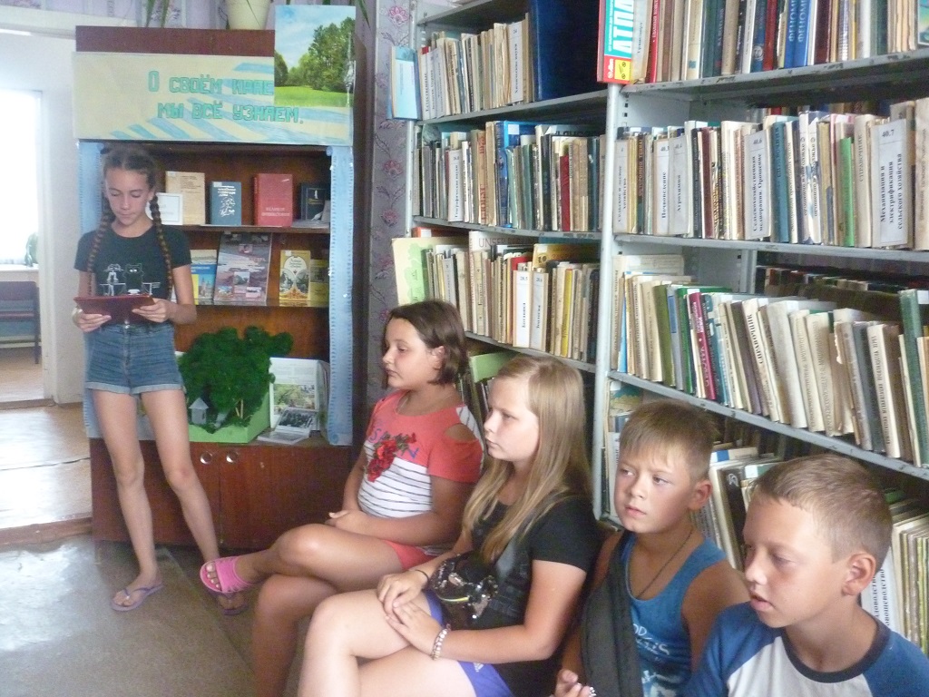 Ведущая мероприятия Леонтьева М.И. провела демонстрацию карты Саратовской области. Участники мероприятия рассказали, что собой представляют символы власти герб Саратовской области и герб Воскресенского района. Продолжила мероприятие Латышева Аня, рассказала ребятам, собравшимся в библиотеке, историю возникновения села Усовка. Впервые она упоминается в летописях в 1710 году. А также в 1710 году в селе проживал 41 человек. Ещё много исторических фактов было приведено в рассказе Латышевой Светланы. Солдаткина Алина рассказала легенду Салимжана Гайсина "Сказ о Белом ключе". Ещё, вниманию участников мероприятия предложена была книжная выставка краеведческого направления, которая их заинтересовала. Дальше ведущая мероприятия провела с командами игры и конкурсы: "Кто где живёт?", "Государство", "Оглянись вокруг", "Города Саратовской области", "Малая Родина — Усовка моя". Не обошлось без пословиц и поговорок, которые с древних времён отражают любовь и преданность к родному краю. При подведении итогов среди команд победила Дружба.