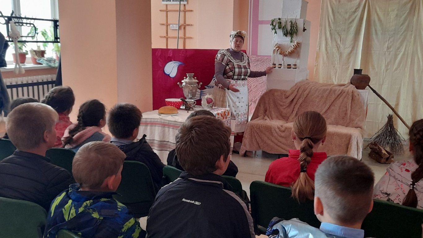 День русской печи празднуется 19 мая , это неофициальный праздник . Для детей начальных классов был инсценирован познавательный час "В гостях у русской печки". Для ребят звучали частушки, загадки, пословицы, считалочки и конечно же всеми любимые сказки. Главной героиней являлась царица печка, а герои: хозяюшка , Егоровна ,Емеля и домовой прославляли русскую печку. Ребята ознакомились с русскими обрядами и традициями . Активно участвовали и в народных играх : колотушки , соберушки и догонялки . Одним словом было весело. Цель: приобщение детей к народным традициям и культуре, знакомство с обрядами русской старины, с предметами русского быта, с русской печью и воспитание интереса к жизни старшего поколения.